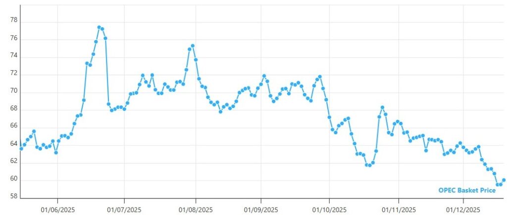 | OPEC basket 18/12/25 OPEC | USD/bbl | $60.06 | Up |