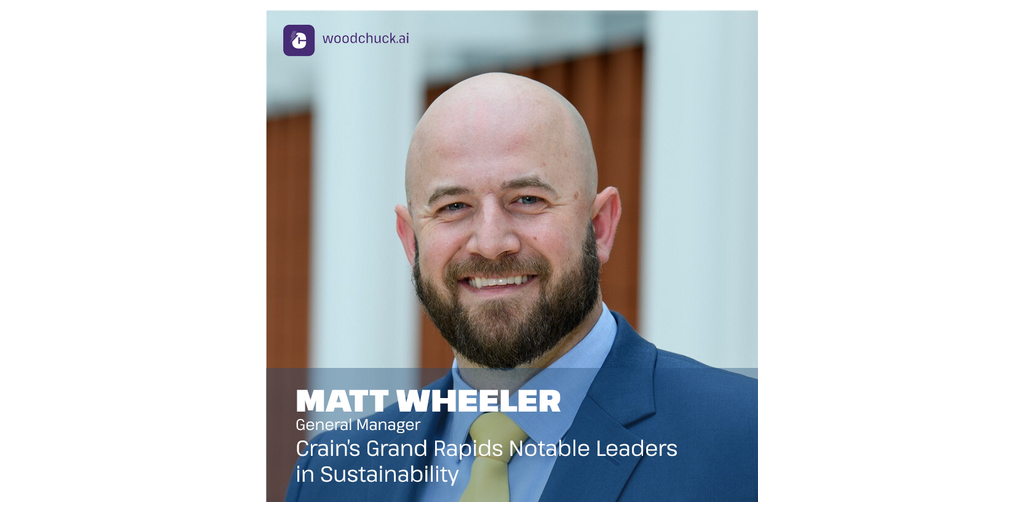 GRAND RAPIDS, Mich.–(BUSINESS WIRE)–#cleanenergy–Woodchuck, a climate impact startup transforming wood waste into renewable energy, is proud to announce that General Manager Matthew Wheeler has been named one of Crain’s Grand Rapids Business Notable Leaders in Sustainability.